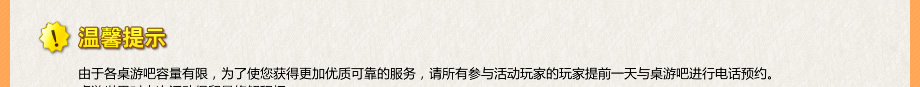 本店有近百款桌面游戏提供给大家玩,有桌面游戏的VIP包房(内含WII),恭候各位新老玩家的来临!请各位大大多多支持!